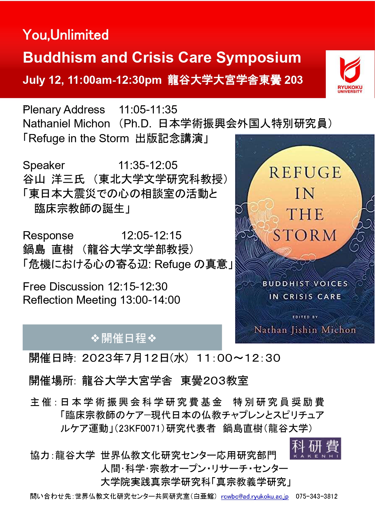 下記の通り、シンポジウム「Buddhism and Crisis Care Symposium」を開催いたします。