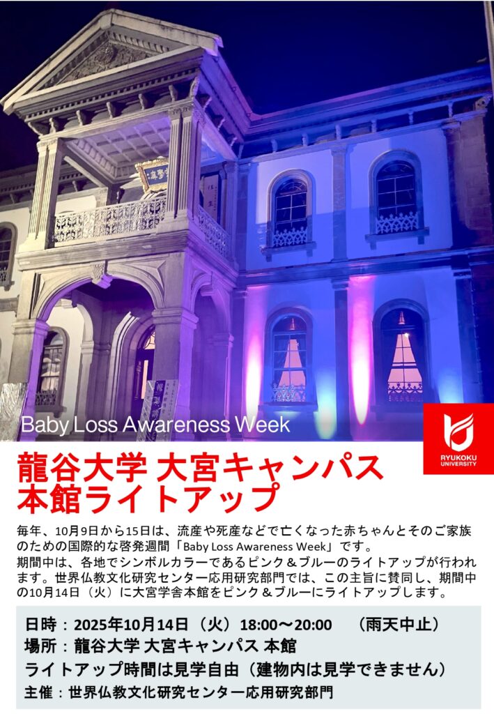 【ご案内】「Baby Loss Awareness Week」大宮学舎本館ライトアップ【世界仏教文化研究センター応用研究部門】