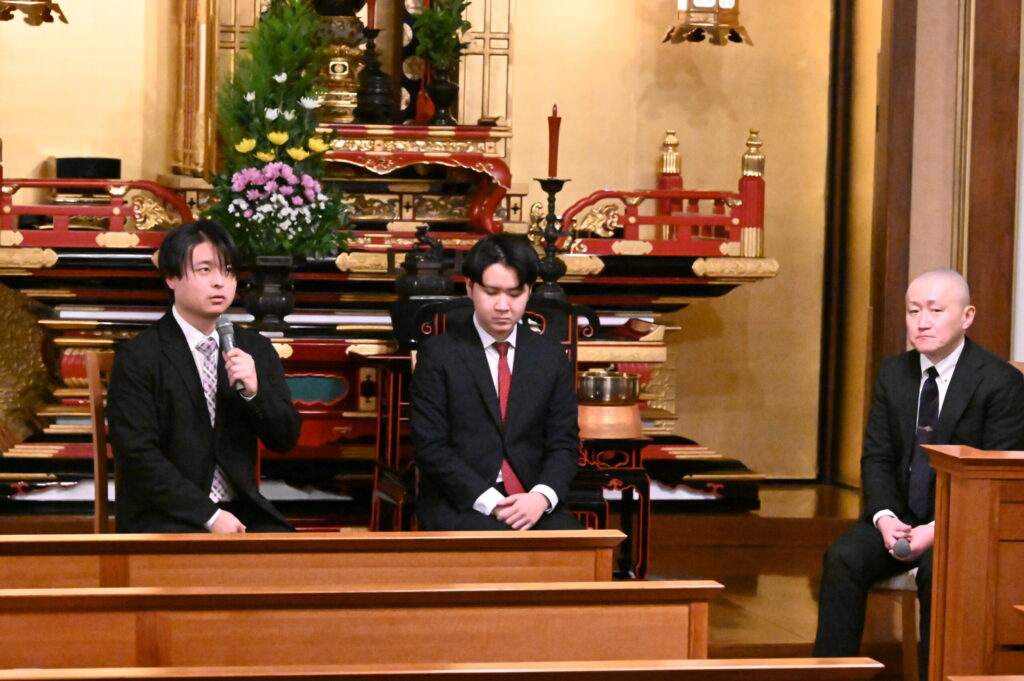 森谷氏はあそかビハーラの研修が心にのこったという。言葉・テキストで学ぶだけではわからない、経験を通したケアの難しさを実感することができた。そして、他者だけでなく、自分自身を見つめることの重要性を実習を通して痛感したと振り返った。藤田氏も同じくあそかでの研修において、「自分自身の心が外に出ていない」と言われたことが印象に残ったという。今までに指摘をされたことがなく、ケアの難しさや今までにない視点に気づくことができたと回顧された。